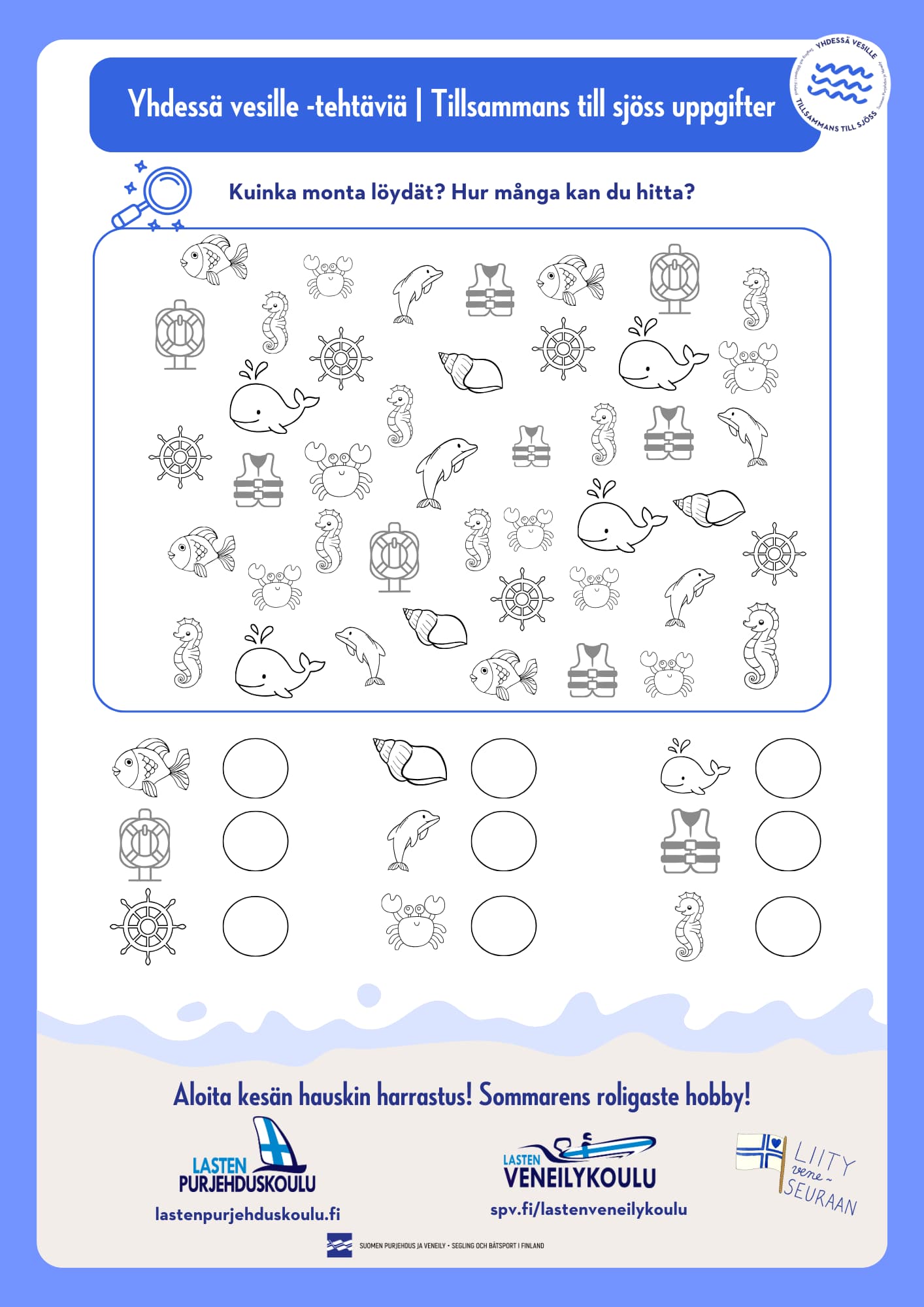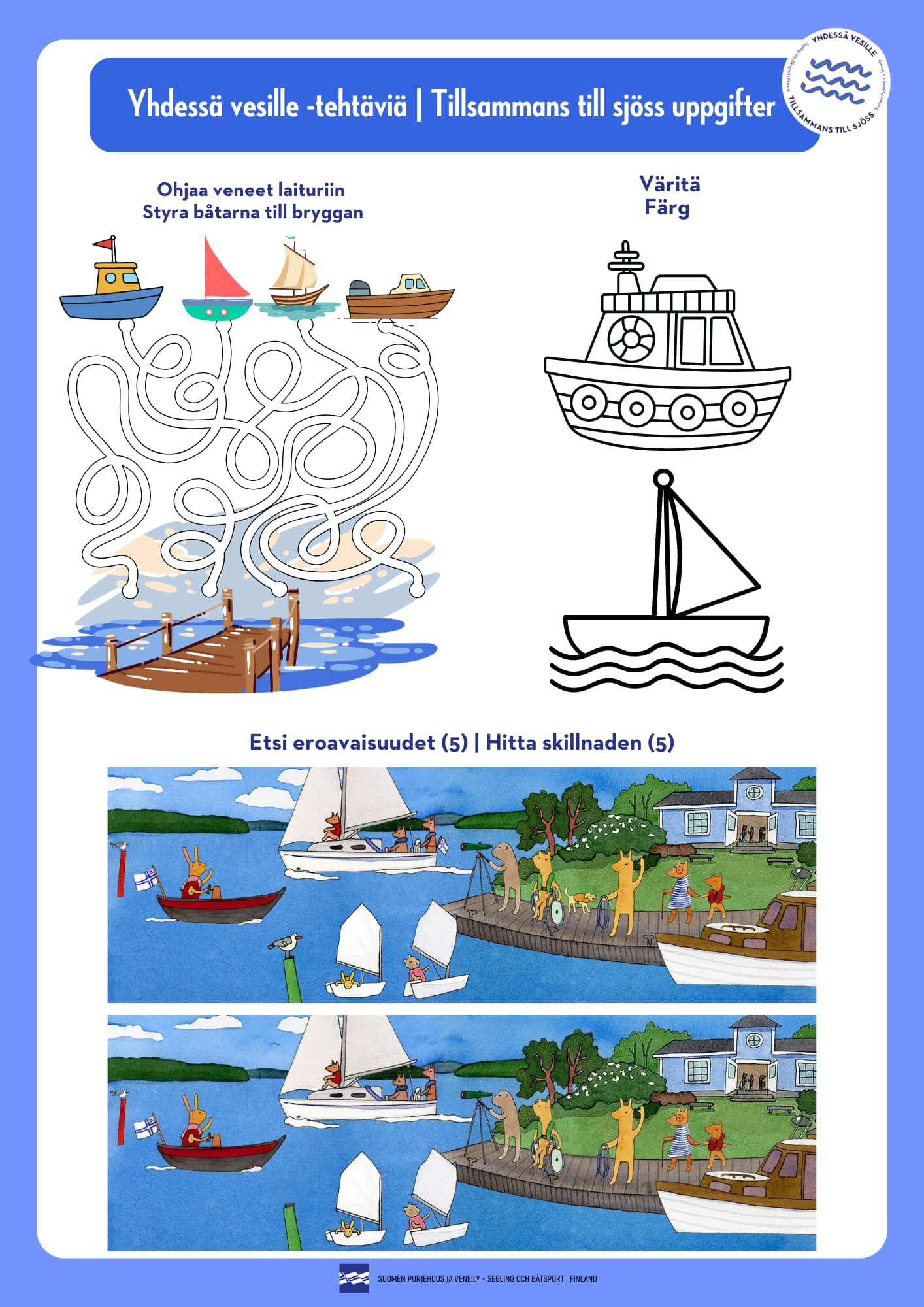 Yhdessä vesille tehtäviä (lapsille) / Tillsammans till sjöss uppgifter (för barnen)